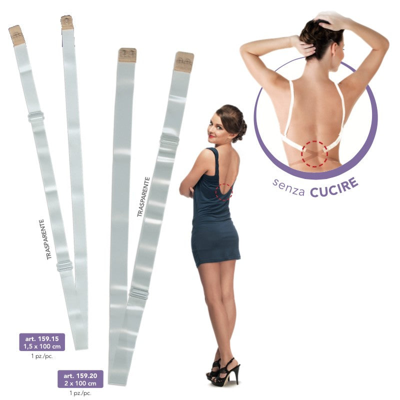 Risulterà indispensabile quando vorrai indossare un abito décolleté, è un nastro trasparente ed anallergico, che agganciato al tuo reggiseno ne modifica la chiusura.