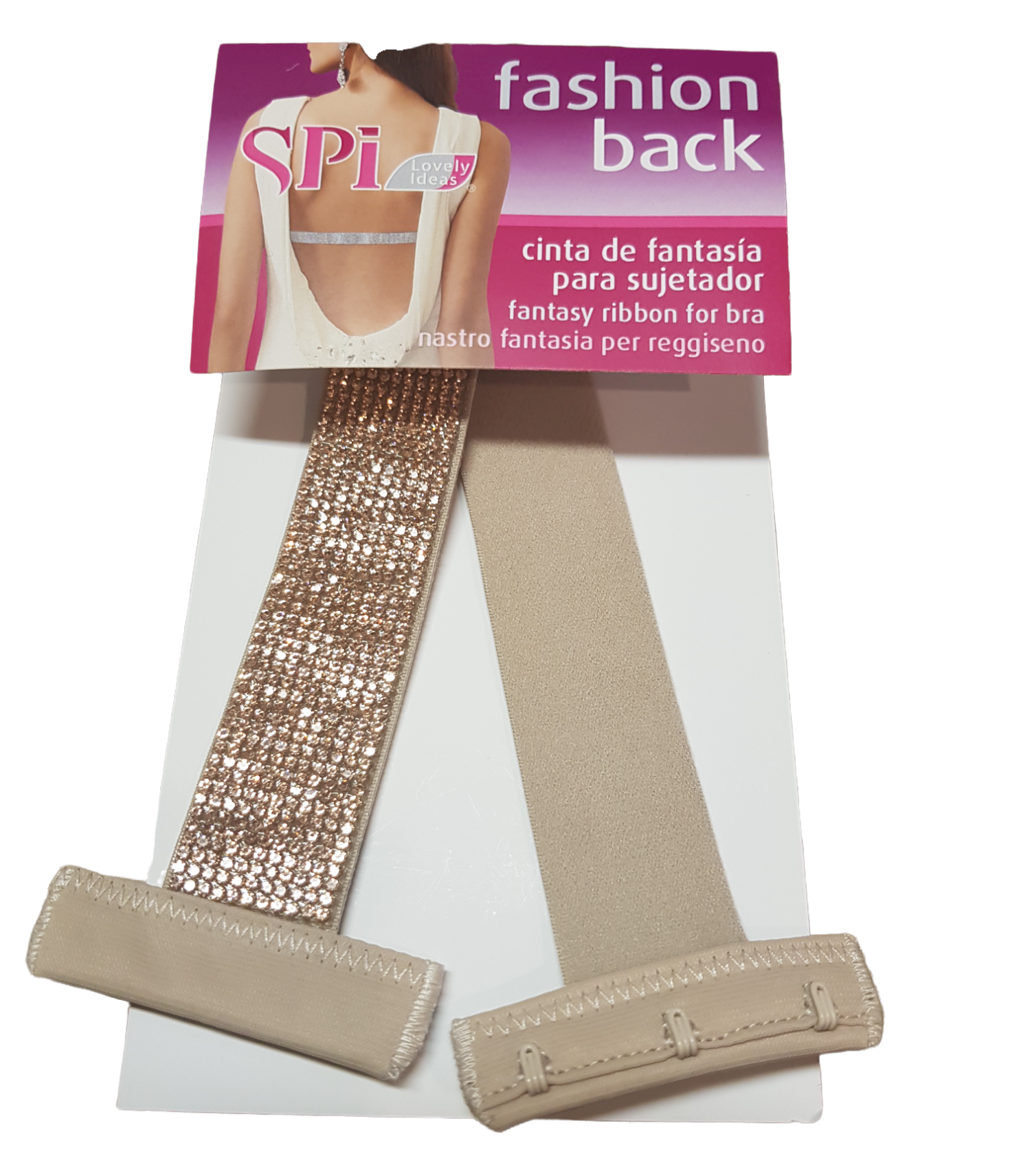 E' un nastro fantasia con strass, con dei ganci da reggiseno alle estremità, che ti permette di indossare abiti scollati sulla schiena senza dover pensare "come sarebbe brutto se si vedesse il reggiseno"!