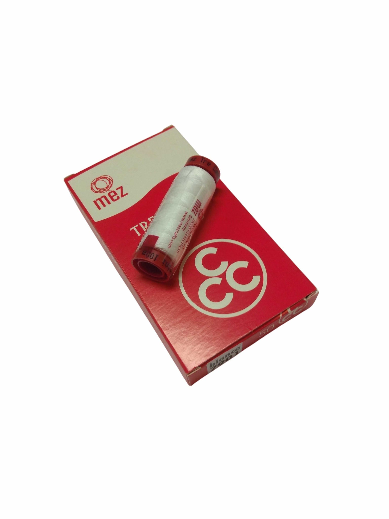 Filo bianco da cucire Mez Cucirini Tre Cerchi da 100 mt numero 50 di spessore.
